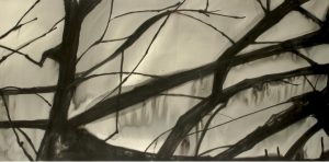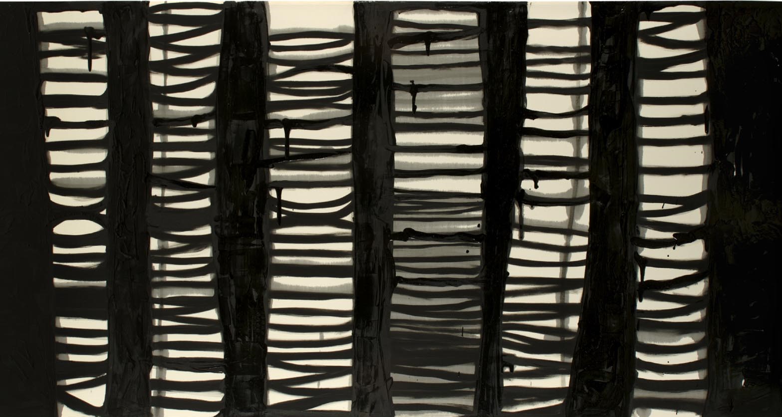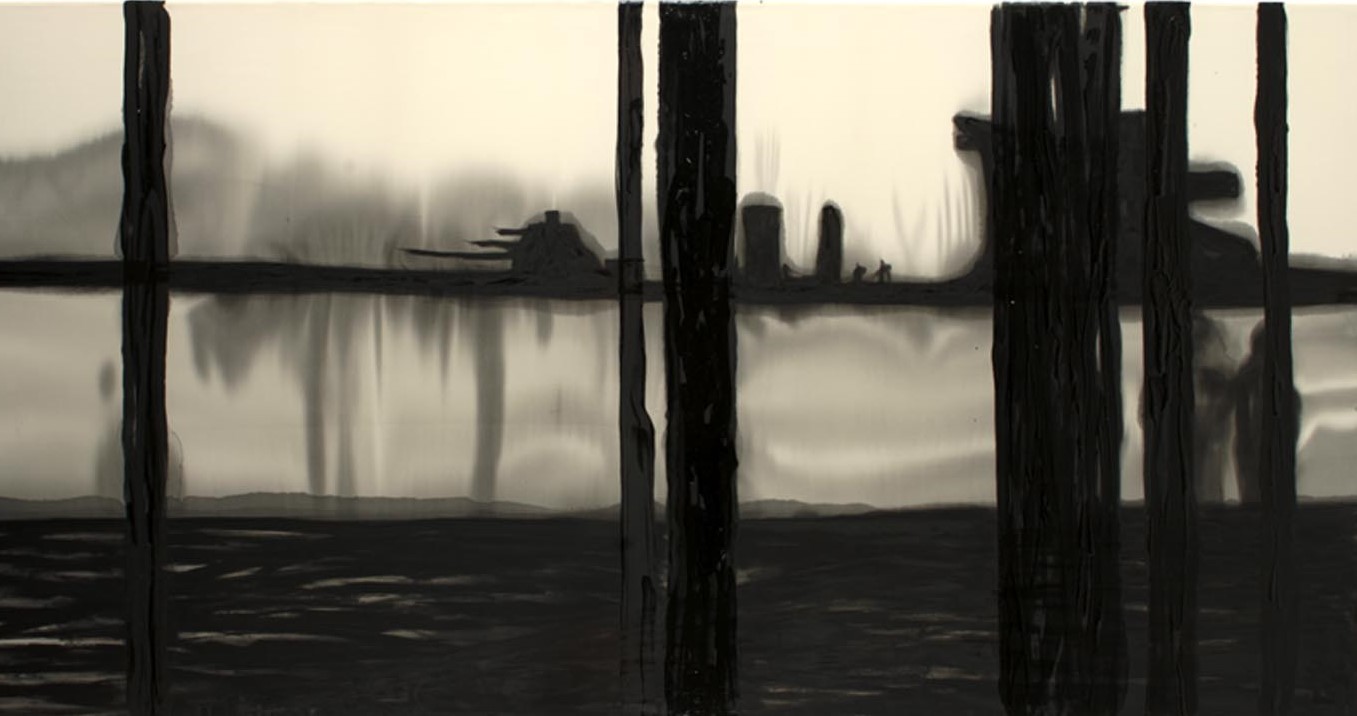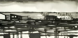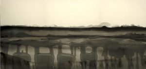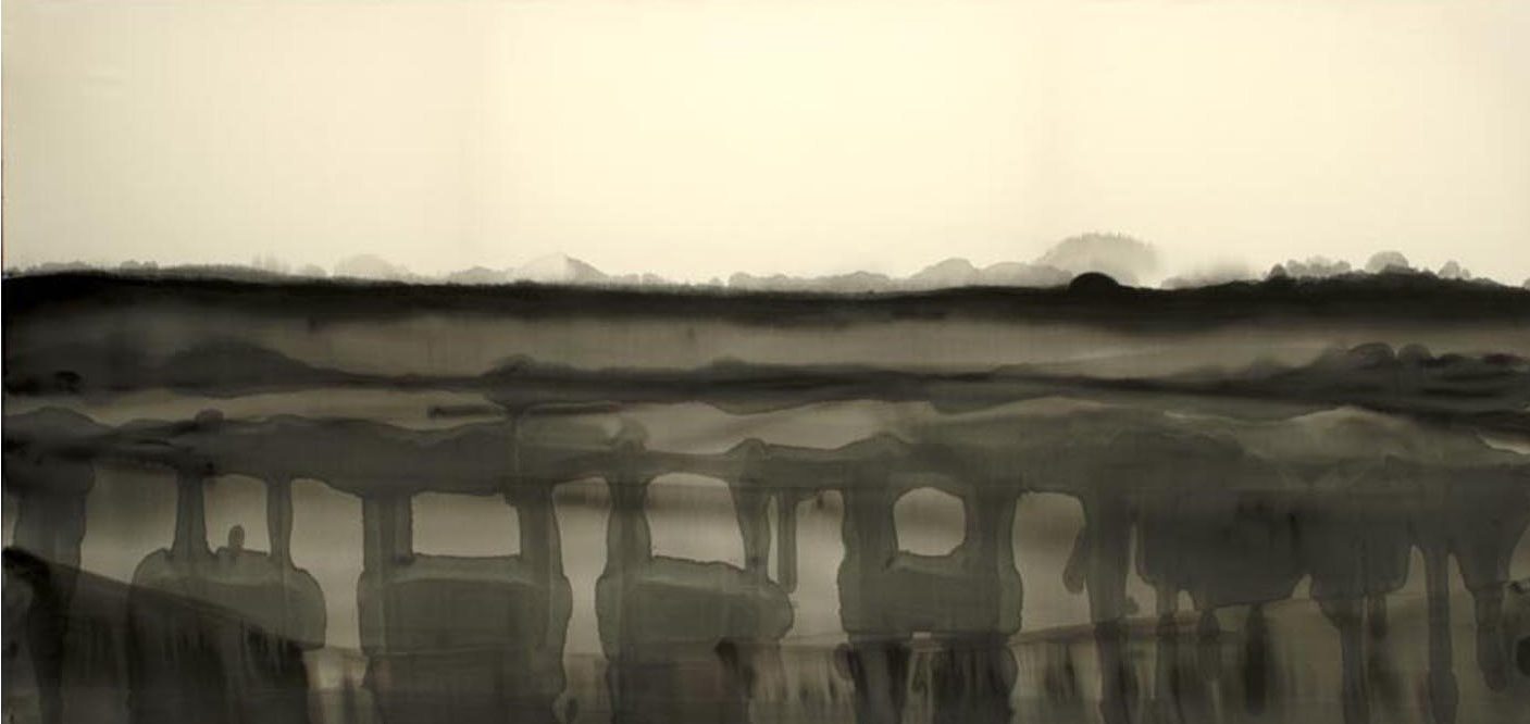 En esa serie retomo parte de ecos de mi infancia y los registro para reflejarlos en paisajes, lagunas y ríos con la técnica del sumi-e, técnica ancestral de dibujo monocromático en tinta negra de la escuela de pintura china. 2008