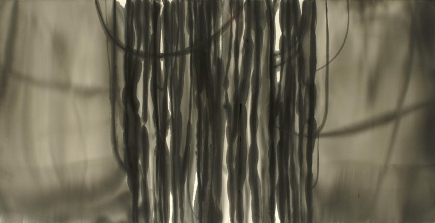 Derrame | Tinta china y acrilico sobre seda | 1.80×0.90 mts